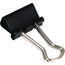 Reusable black binder clip with silver arms securely fastens stacks of paper. Tempered steel provides extra strong hold and clips spring back into shape when removed.